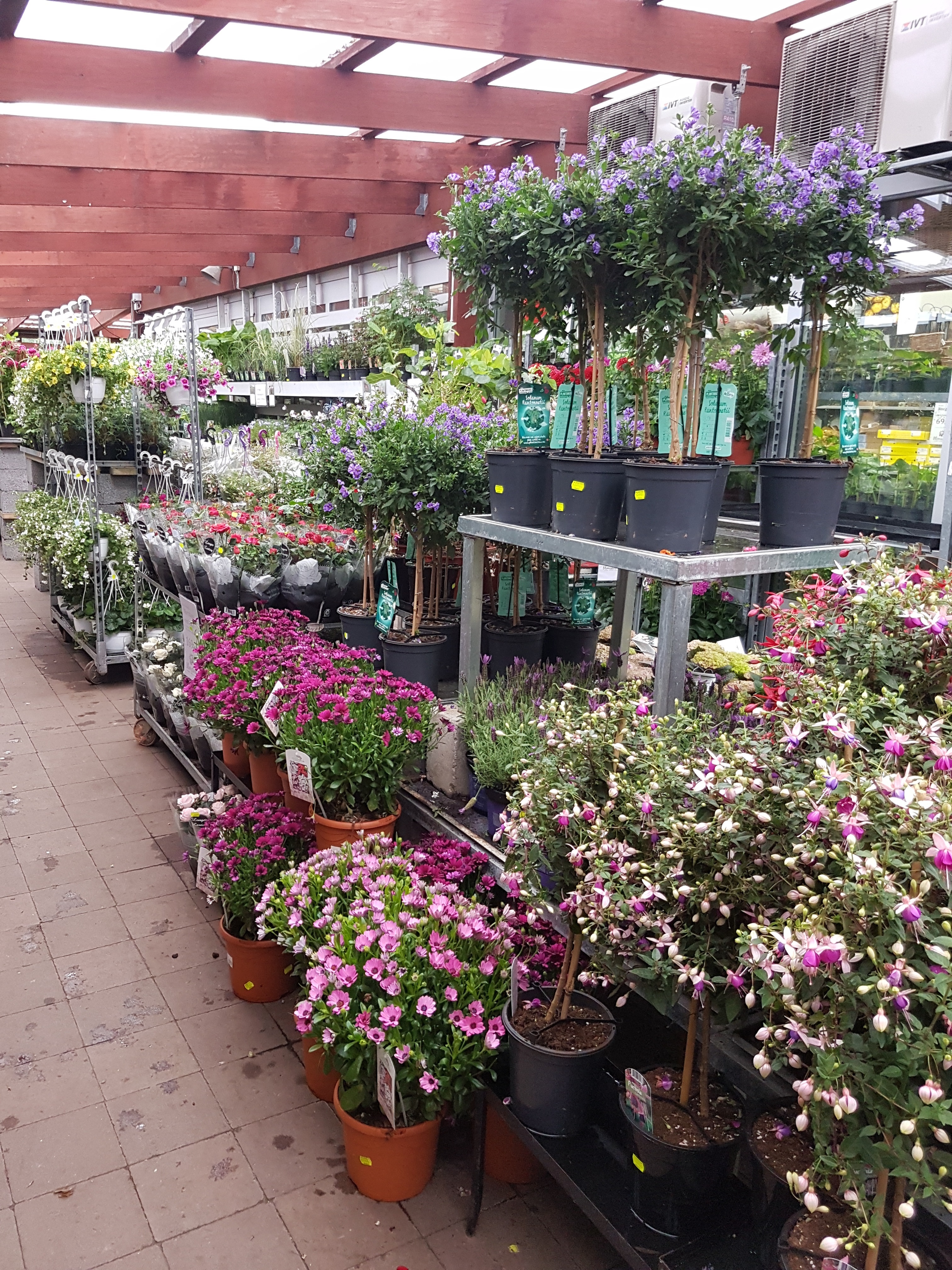 Just nu är butiken fylld till bredden med mängder av fina sommarblommor, olika sorters stamträd, amplar,
